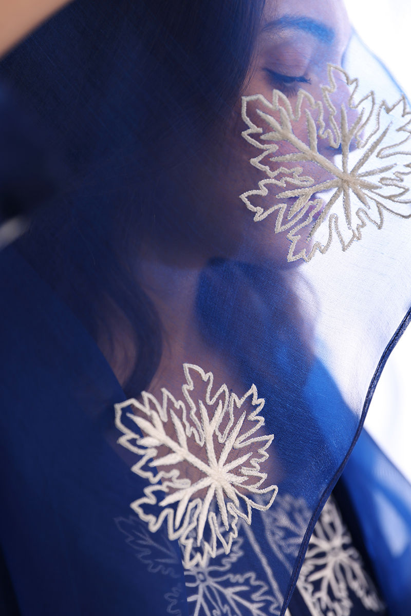 Color: Navy Blue Fabric: Korean Raw Silk & Organza Work Details: Embroidered