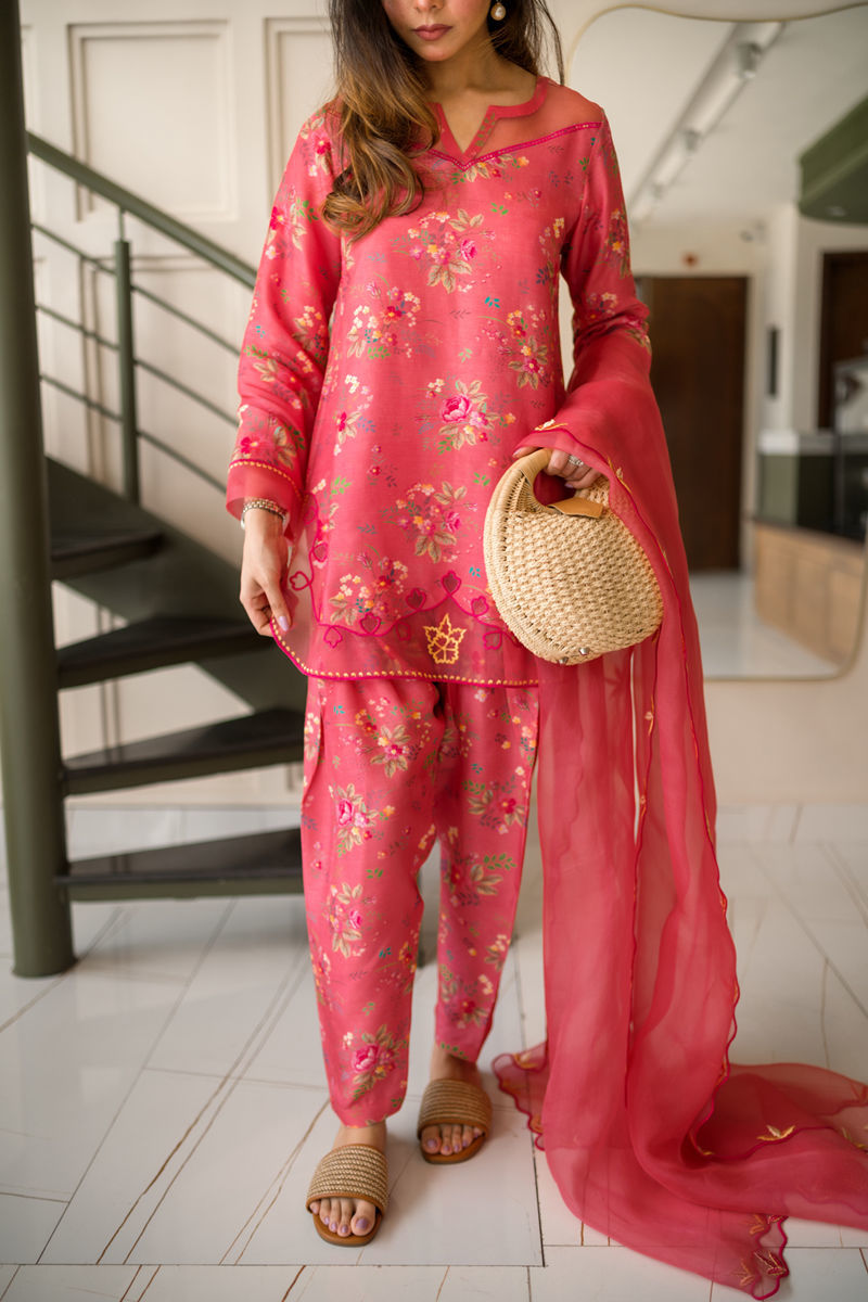 Color: Raspberry Pink Fabric: Korean Raw Silk Work Details: Hand Embroidered
