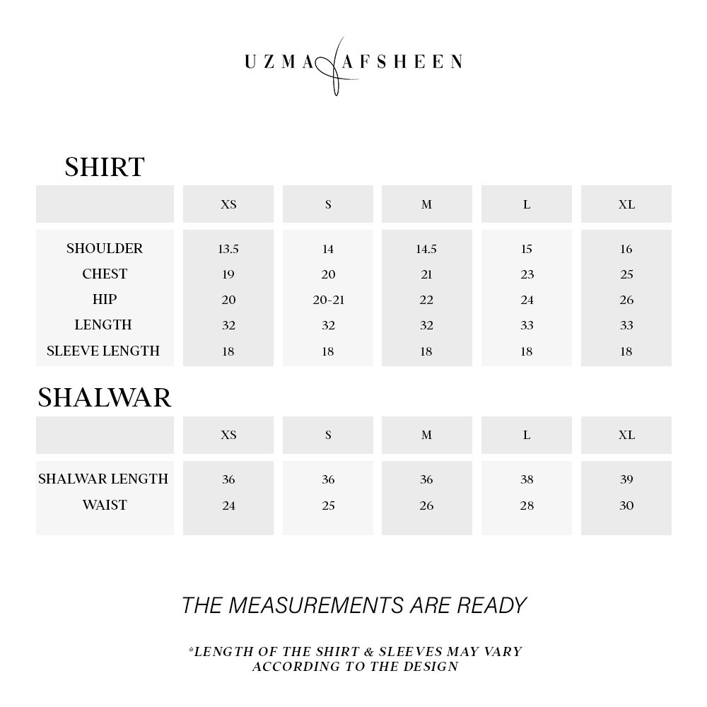 The Shirt Length is 32 Inches and skinny shalwar length is 36 inches.