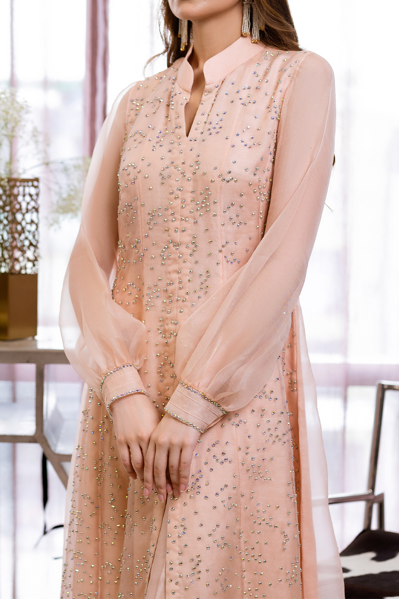 Color: Champange Pink Fabric: Organza Work Details: Hand Embellished, Swavroski