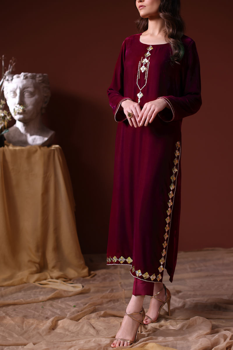 Color: Magenta Fabric: Velvet Work Details: Hand work, Mukesh
