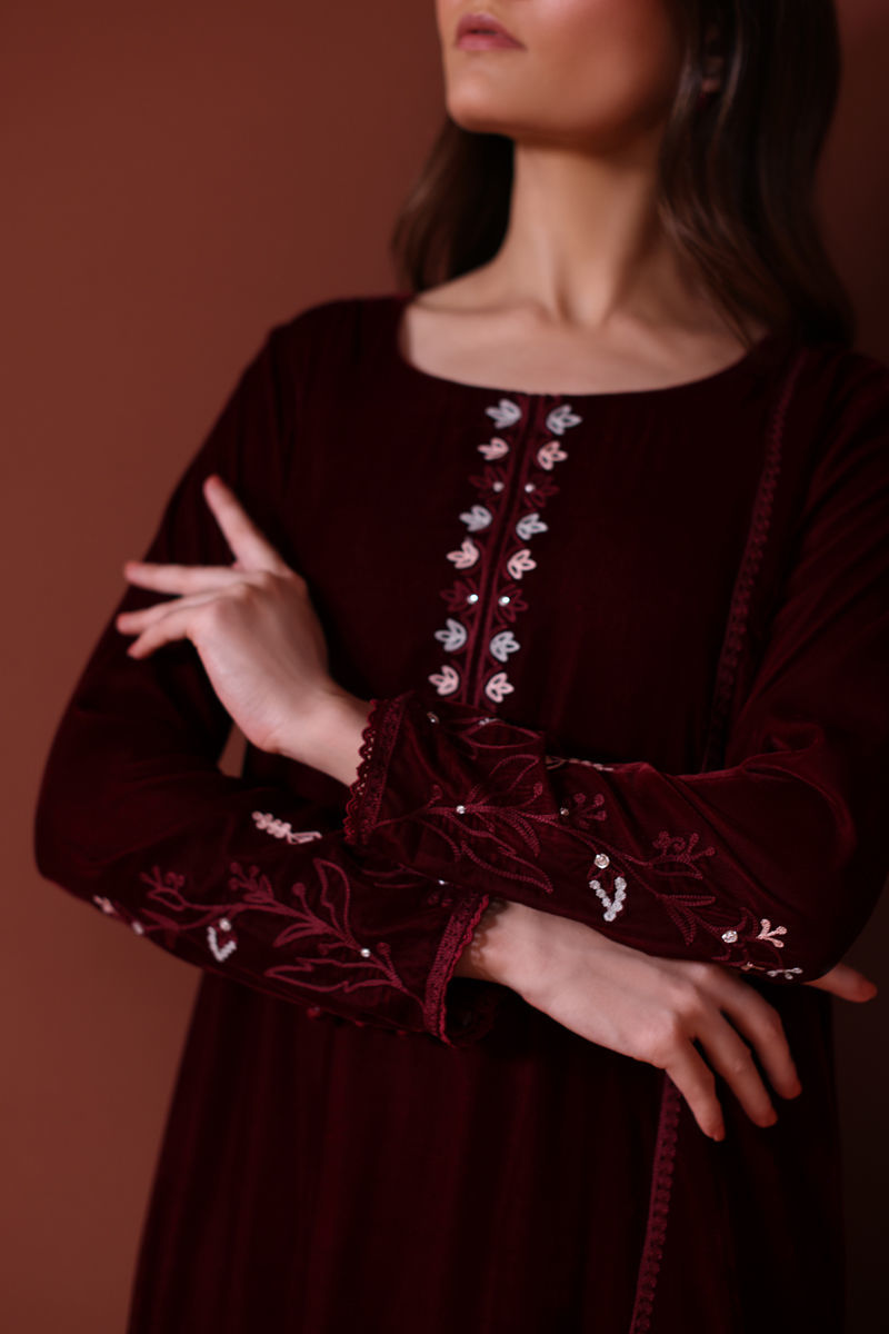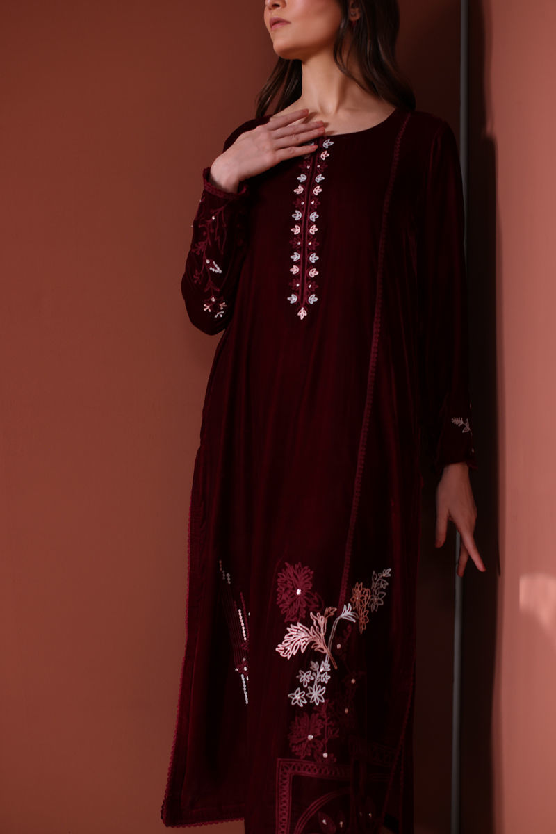 Color: Maroon Fabric: Velvet Work Details: Arri Work