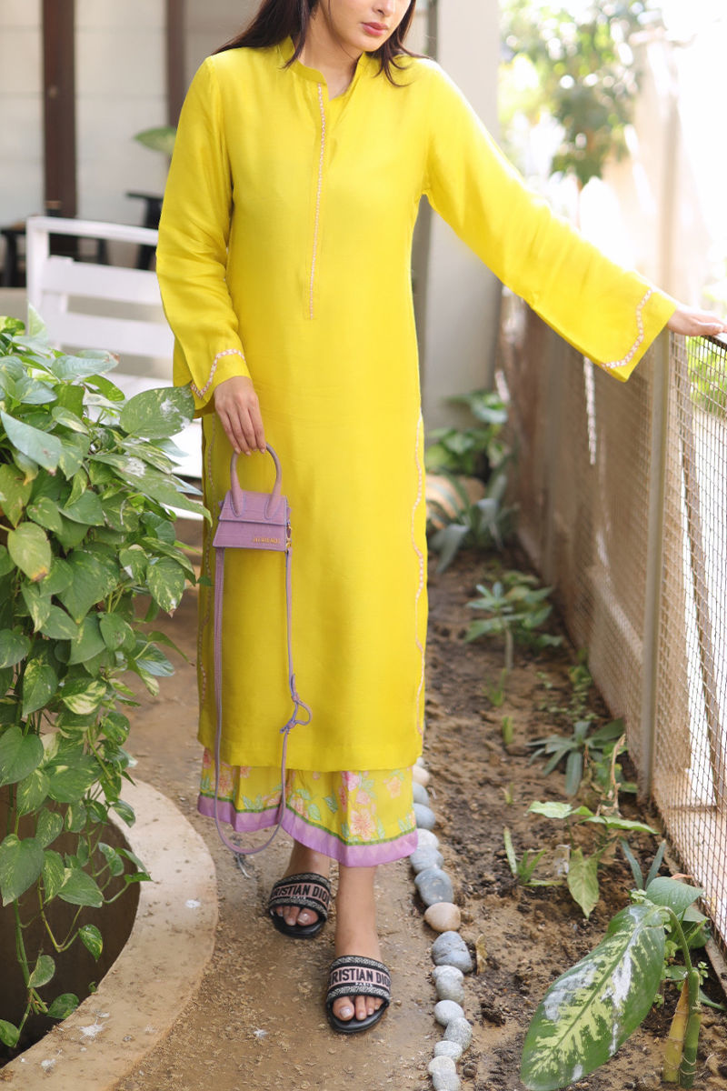 Mia | Elegance unfolds in a canvas for digital artistry in Kiwi green. A solid shirt seamlessly paired with printed culotte pants. This ensemble is a fusion of sophistication and style.