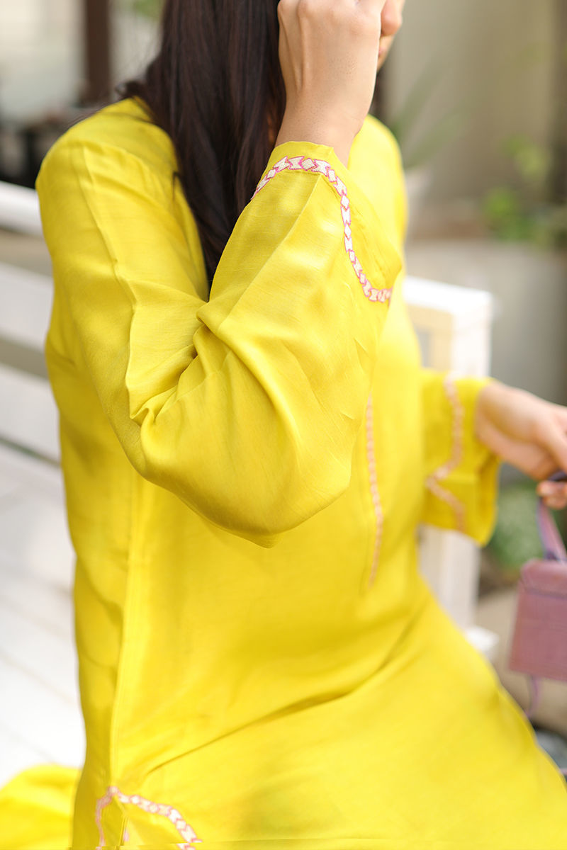 Color: Kiwi Green Fabric: Korean Raw Silk Work Details: Digitally Printed