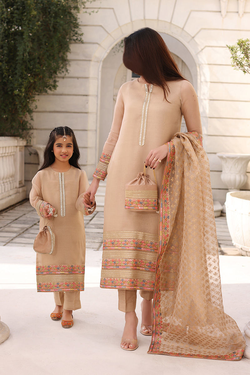 Color: Nude Fabric: Organza & Silk Pant Work Details: Embroidery & Mirror Work