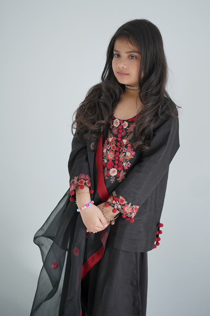 Color: Black & Maroon Fabric: Korean Raw Silk Work Details: Embroidered & Button Detailing