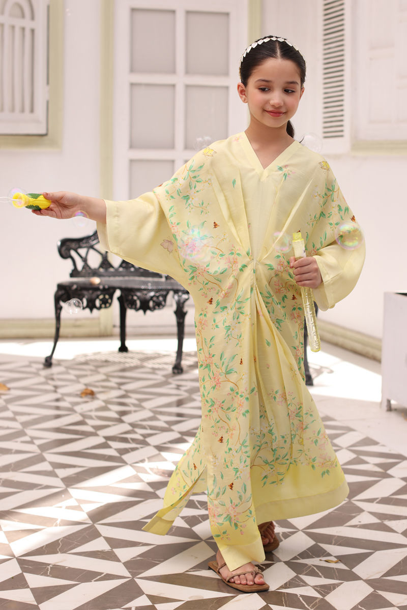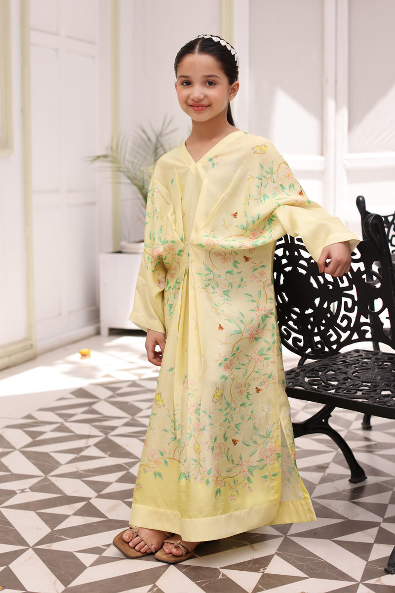 Adorn your little one in our Korean raw silk digital print kaftan, mirroring luxury and elegance. This delightful piece features intricate designs and a soft, comfortable fabric. Perfect for creating adorable, stylish mother-daughter moments.