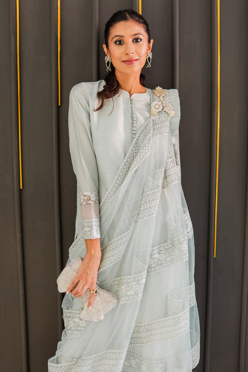 Color: Light blue Fabric: Korean Silk and Net Work Details: Embroidery