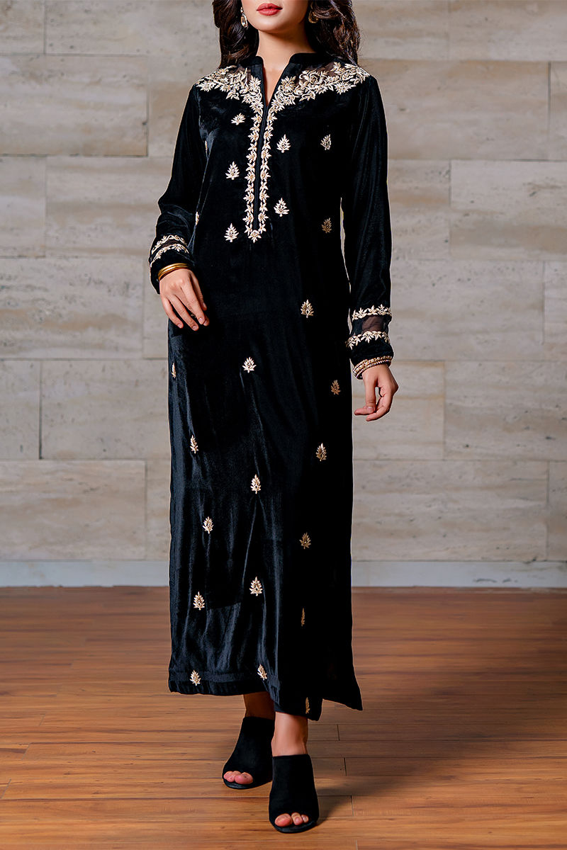 Color: Black Fabric: Velvet Work Details: Embroidery, Pearls