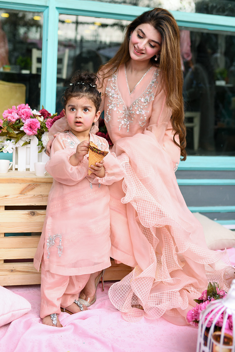 Color: Peach Fabric: Organza Work Details: Hand embellished