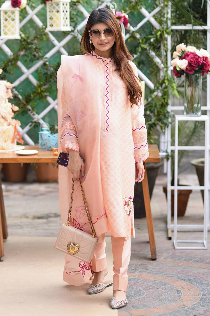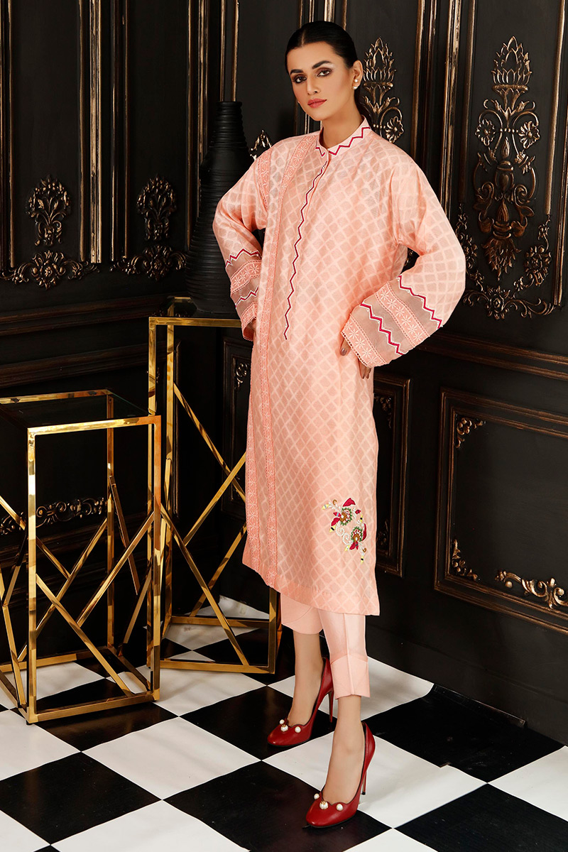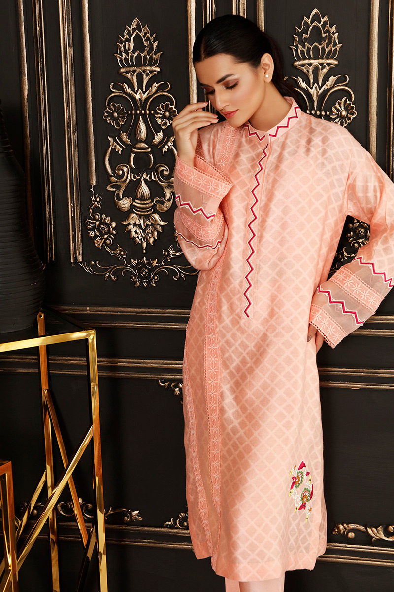Color: Pink Fabric: Self Cotton Net Work Details: Embroidered