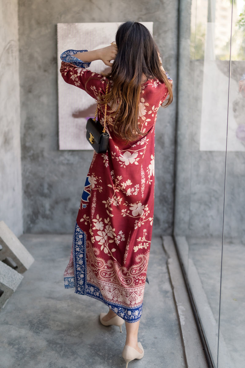 Serving major vibes. Deep maroon & blue digital print shirt in soft fabric with a sleek side slit. A stunner that’s equal parts comfy and cool.