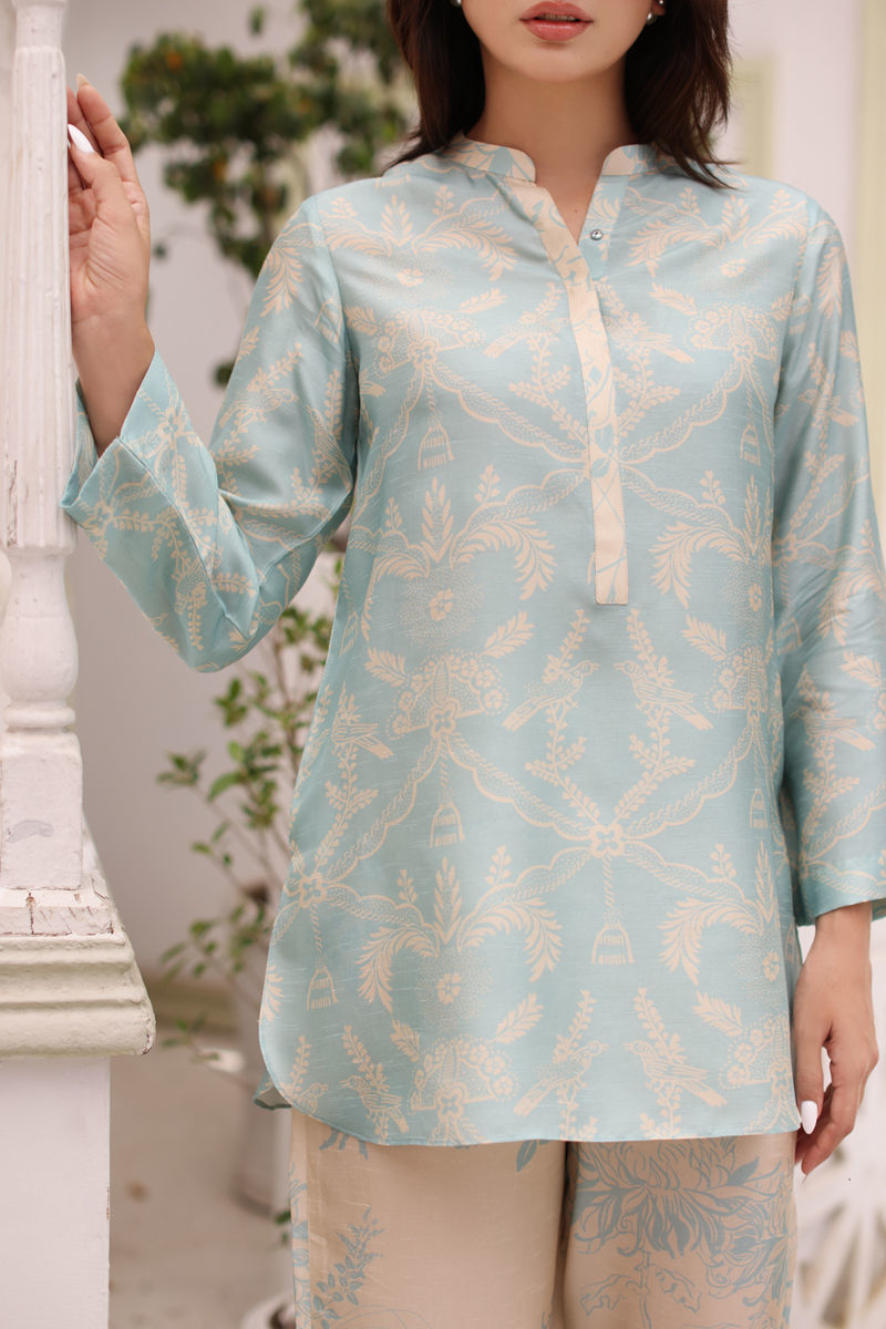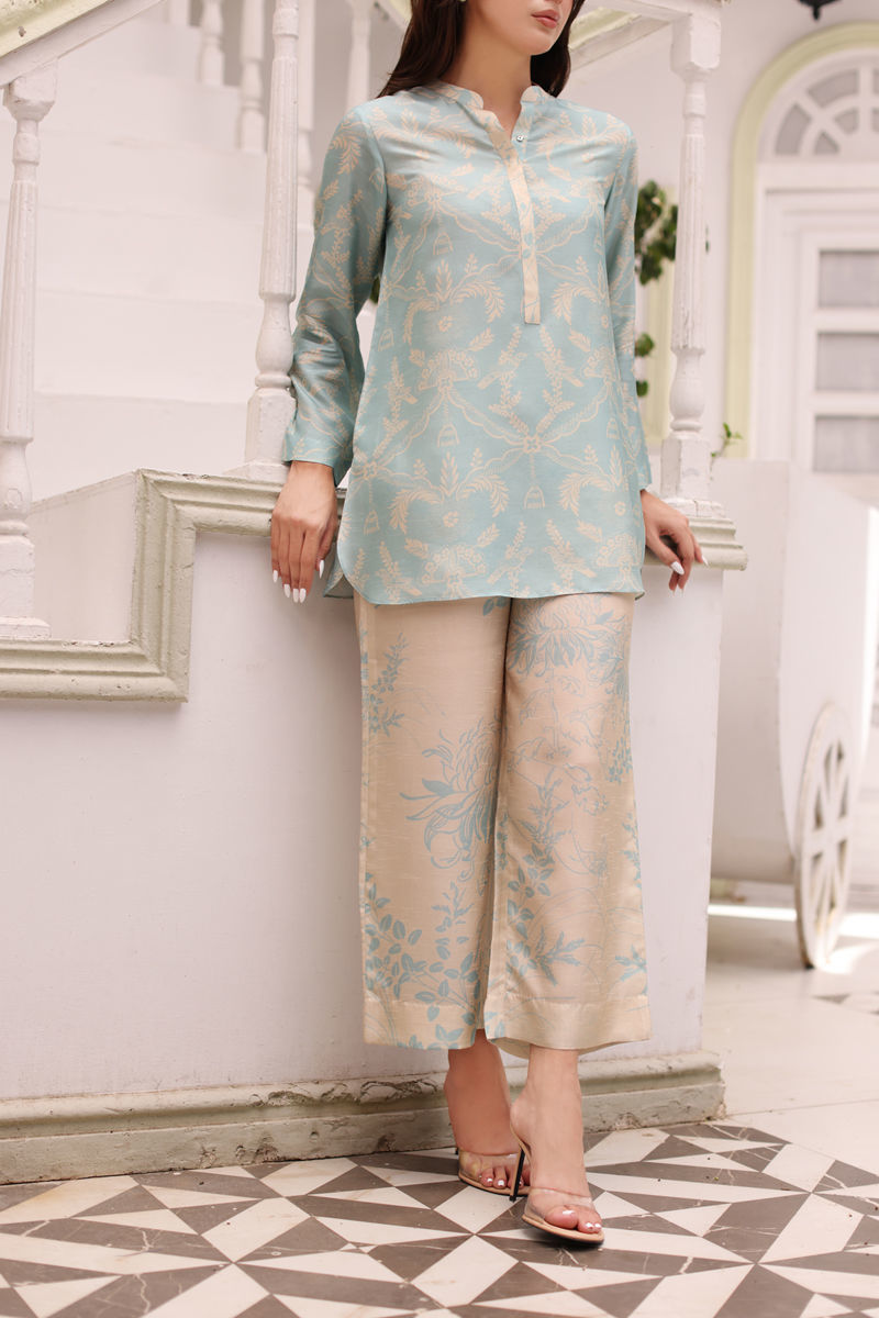 Indulge in sophistication with our exquisite 2-piece silk ensemble. This set exudes elegance and charm, featuring a beautifully printed shirt and complementing pants. Perfect for making a statement at any event, it's a must-have addition to your wardrobe.