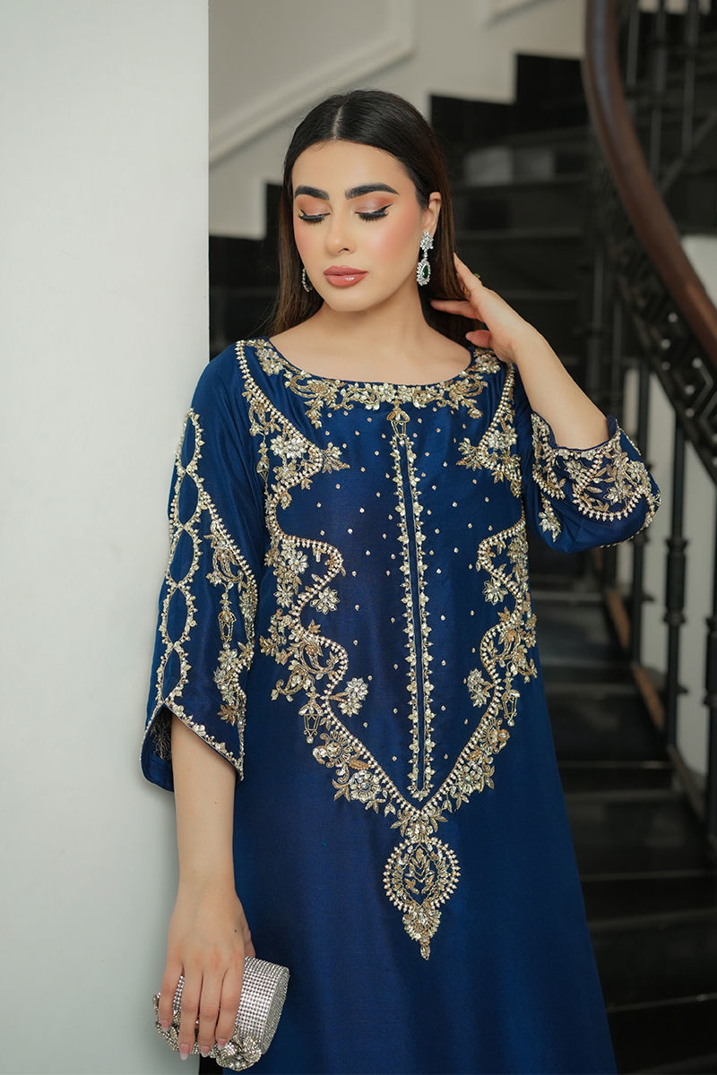 Color: Sapphire Fabric: Pure Raw Silk Work Details: Embellished