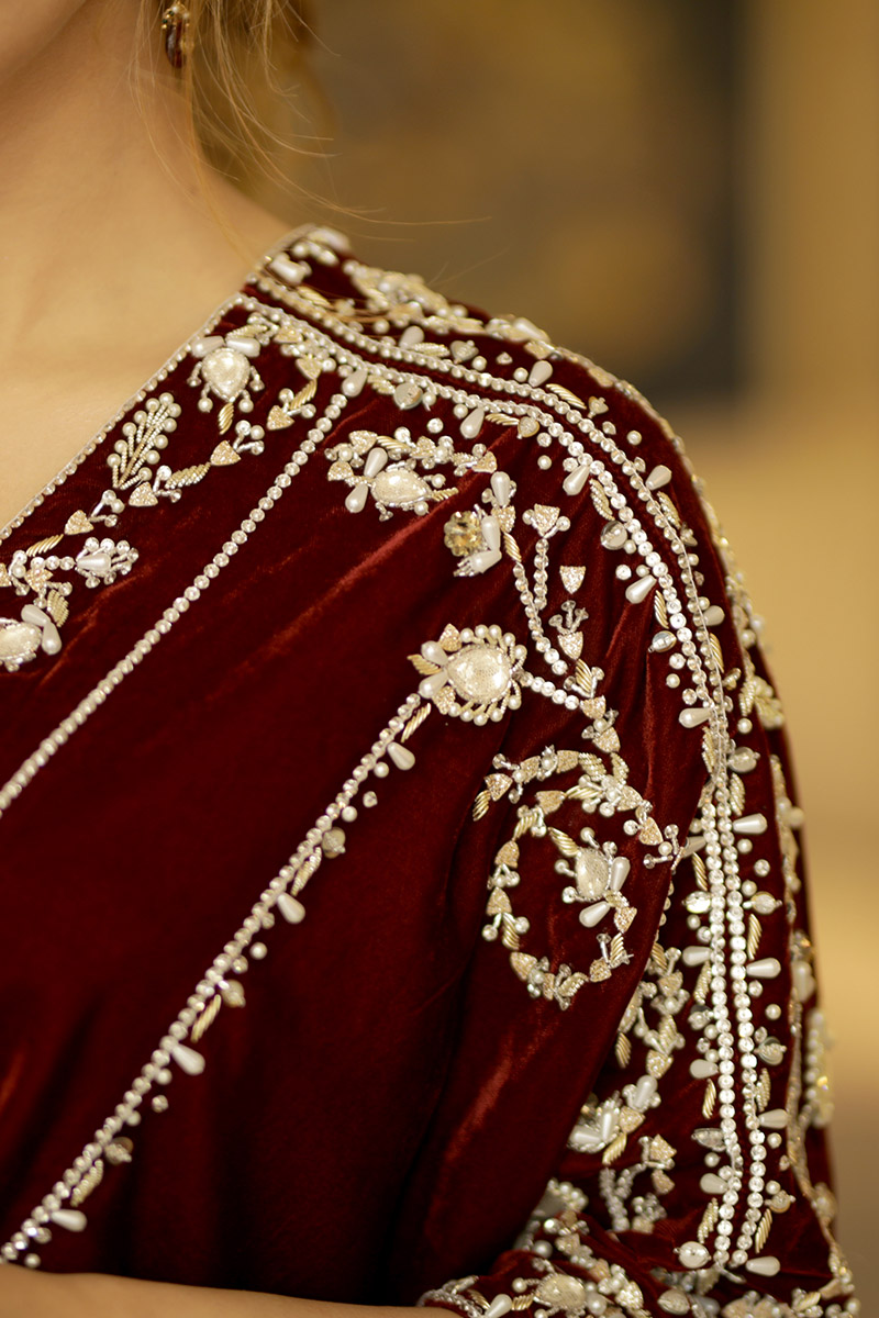 Color: Maroon Fabric: Velvet Work Details: Embellished