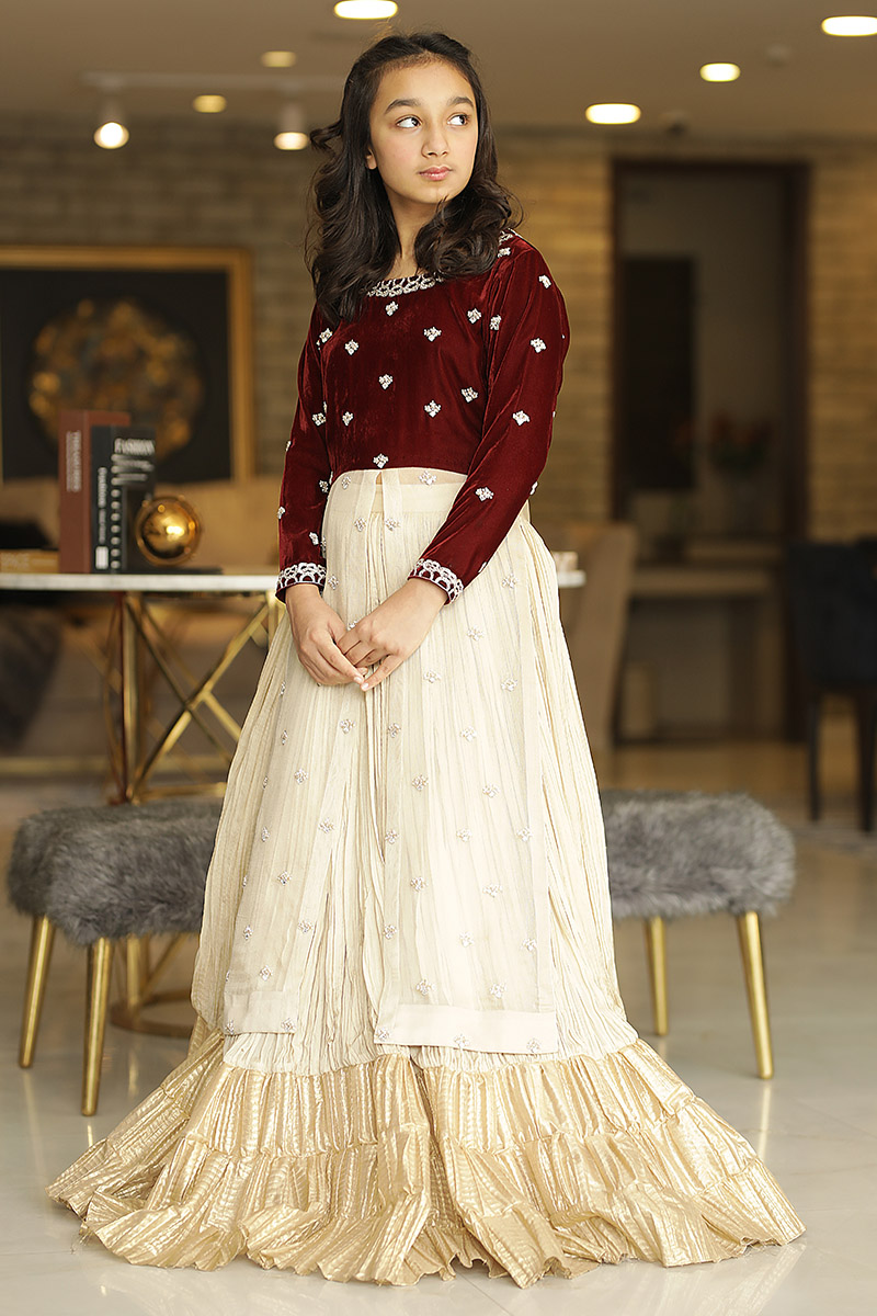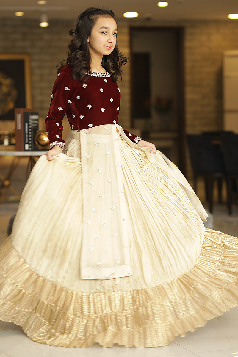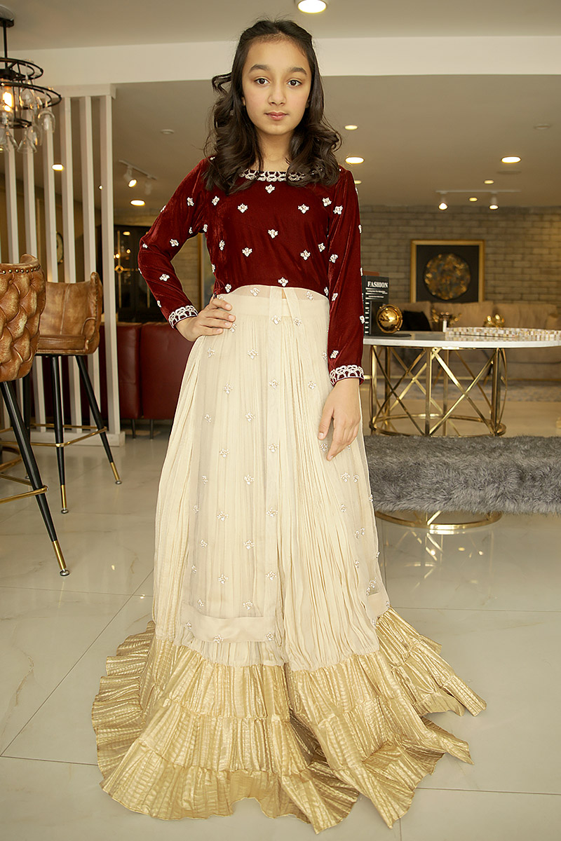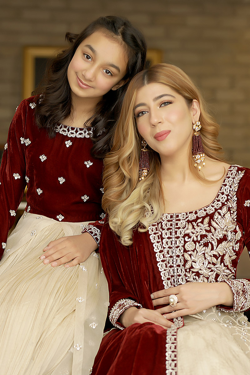 Color: Maroon Fabric: Velvet Work Details: Embellished
